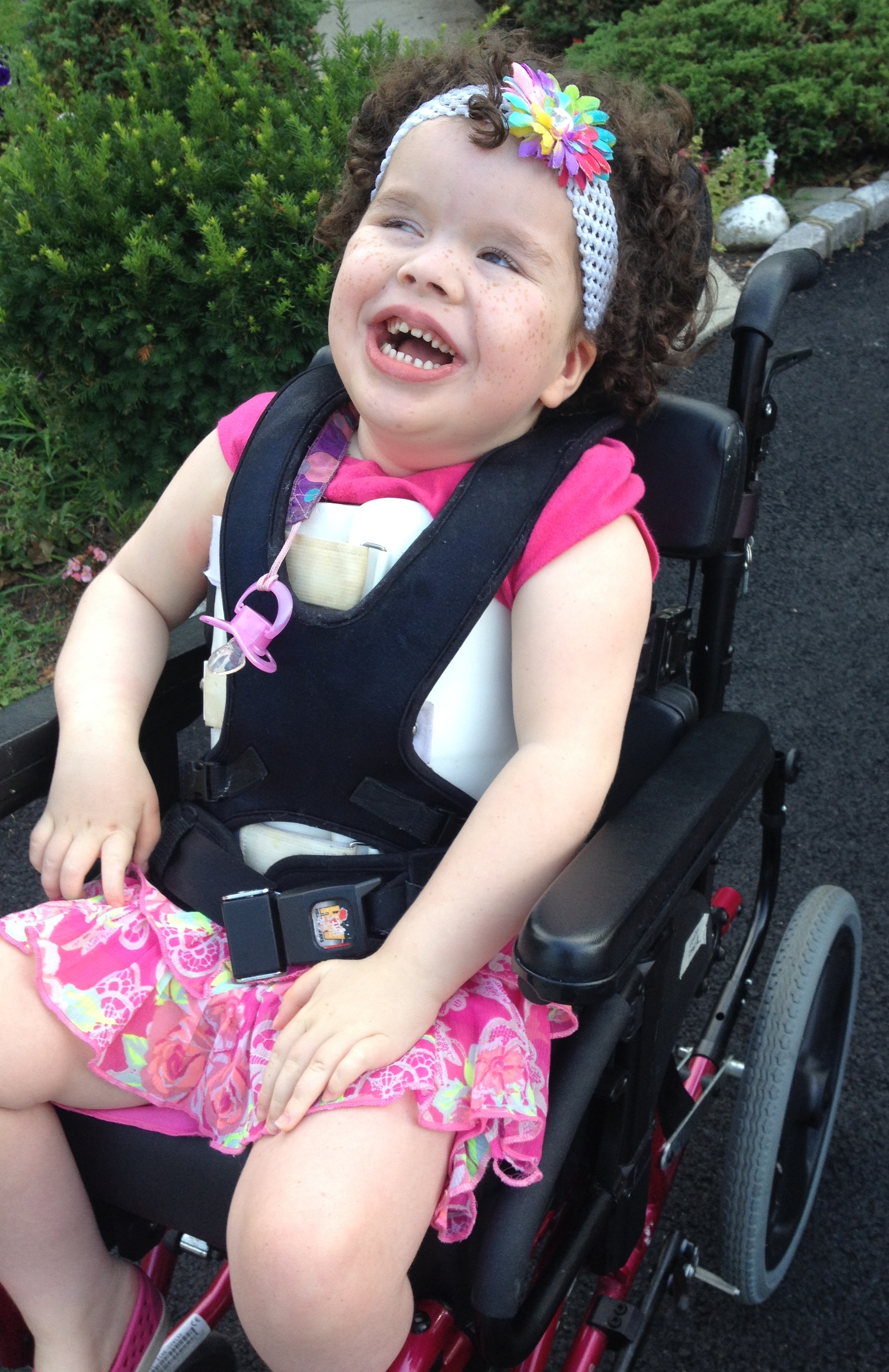 Brianna is blind and has profound cognitive and physical disabilities. She cannot walk or talk and studies indicate that 96% of children with PKS develop seizures by age six. Brianna’s extremely low bone density puts her at risk for broken bones and osteoporosis, so special equipment and therapies are crucial. Areas of Brianna’s brain are not developed due to the genetic disorder and intensive therapy helps foster the development of her brain forming new neural pathways. Brianna requires constant stimulation of her senses and muscles or her doctors warn that she will regress and the results would be devastating.